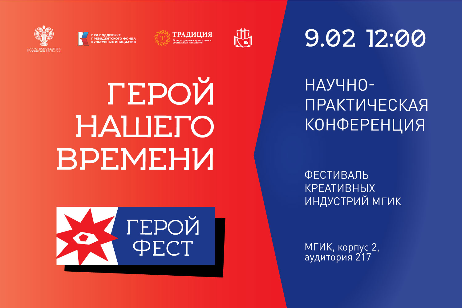 В Московском государственном институте культуры стартует масштабный Фестиваль креативных индустрий «Герой нашего времени», который реализуется при поддержке Президентского фонда культурных инициатив (ПФКИ) и Фонда поддержки культурных и социальных инициатив «Традиция».
